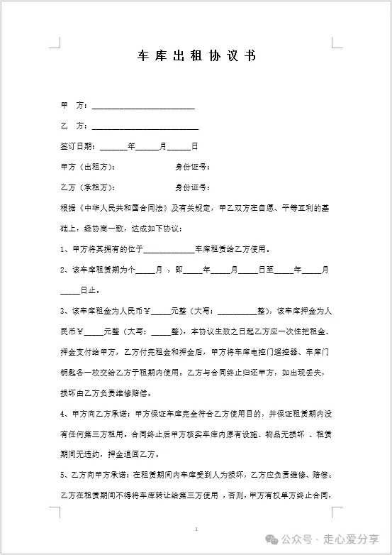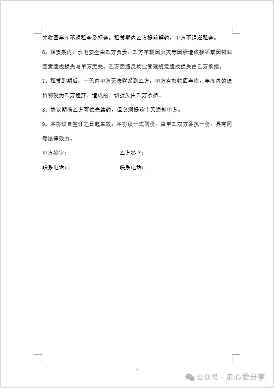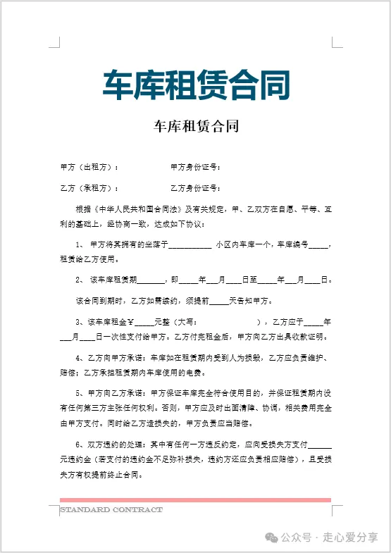 回复关键词“车位租赁合同”领取!