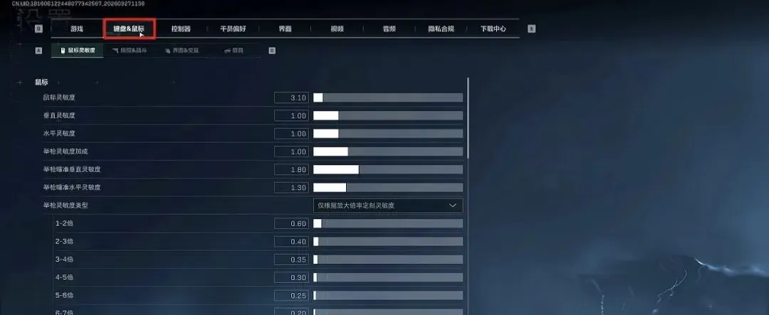 1. 打开游戏设置,切换到“键盘&鼠标”一栏。