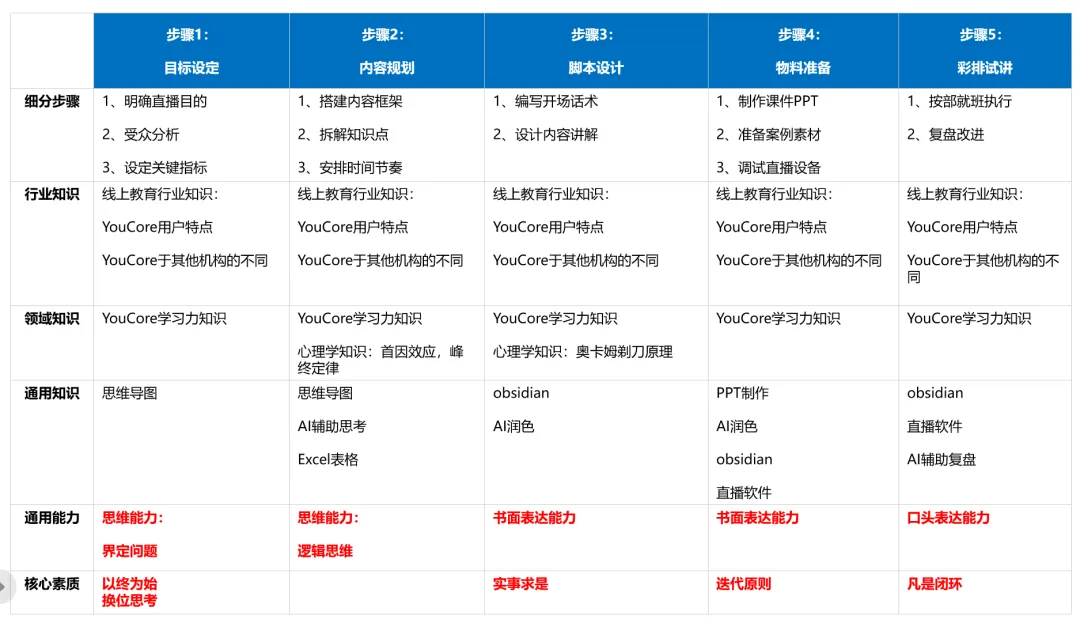 有了这个流程框架,可以让我一眼看清楚,做好直播的整体能力要求。