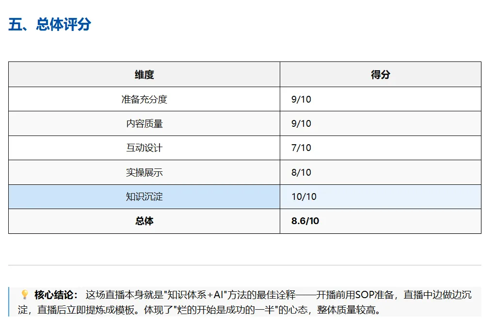 从我的实际体验来看,这份复盘的准确性达到了90%以上——我只需要基于自己的主观感受,做些微调补充即可。