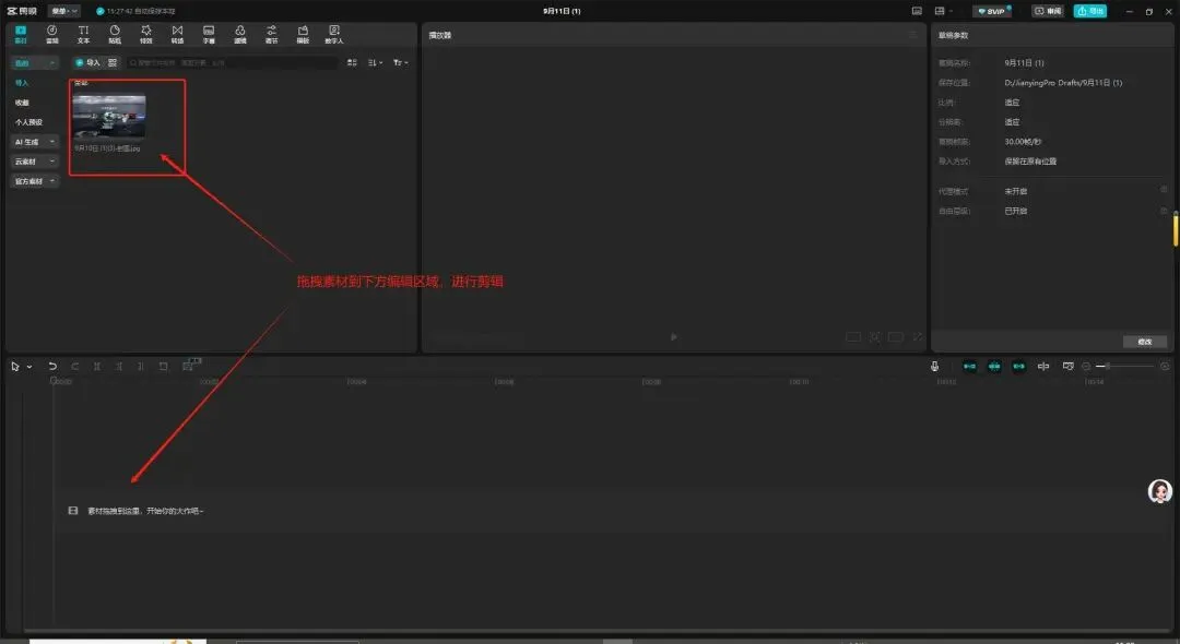 - 将素材从素材区拖到时间轴轨道上,就可以开始编辑了