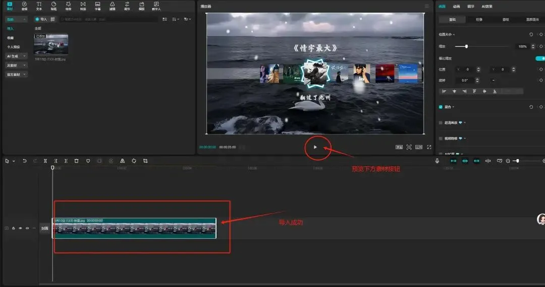 导入素材成功后预览