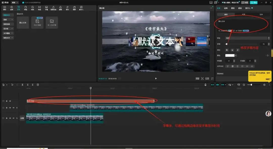 修改字幕内容,调节字幕条