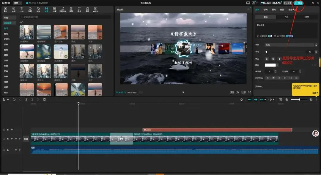 就这样,一段简单的视频剪辑就完成了,是不是很容易上手呢!快去实践一下,后续还有更多教学!