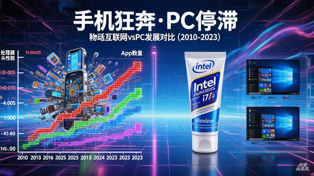 2007年iPhone发布后,所有人的目光都转向了那块小小的屏幕。手机处理器一年翻一倍,摄像头一年升一级,App数量一年翻一番。而PC呢?英特尔挤了十几年的牙膏,Windows换了个开始菜单就算大版本更新,键盘鼠标的交互方式几乎没变过。
