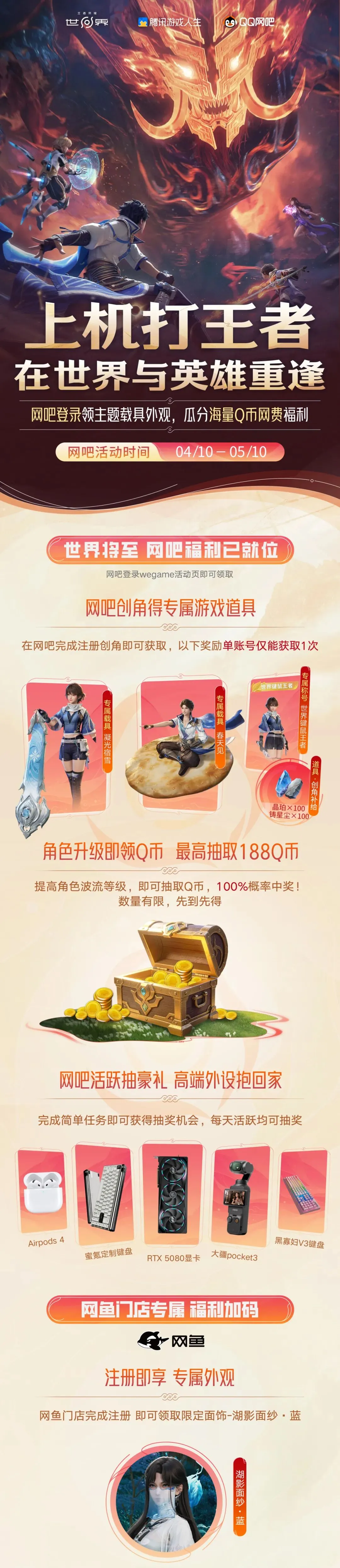 网吧活跃还可抽豪礼,5080显卡、小蜜蜂定制键盘等高端外设,等你抱回家!