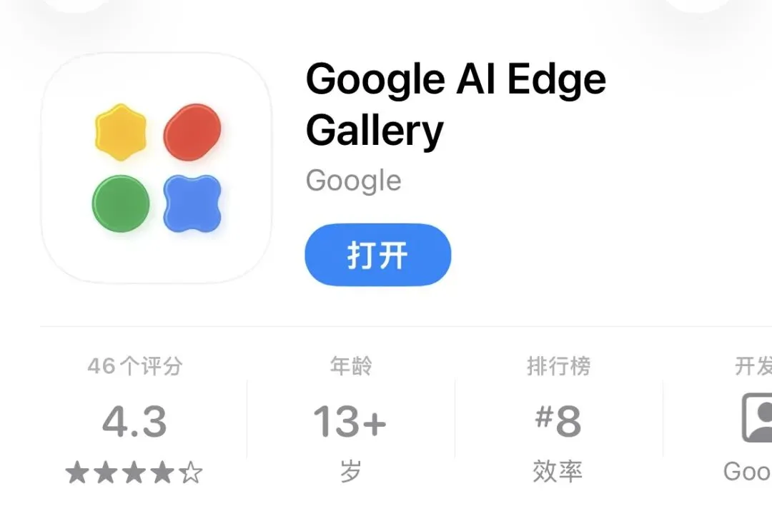 大就在这两天,谷歌在 iOS 的 App Store 悄悄上架了一个新应用——Google AI Edge Gallery(需要美国苹果ID)。