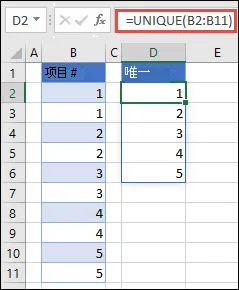 UNIQUE 函数返回列表或范围中的一系列唯一值。