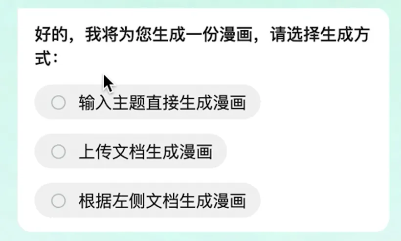 依靠自身在AI技术上的长期积累,从AI生成文档,到AI生成思维导图、PPT、研究报告,再到如今AI生成画本和漫画,百度文库团队始终致力于帮助用户解决全流程痛点,用户可以在网页端输入文字进行操作,也可以在APP端「动动嘴」发送一条语音指令,就能在短时间内快速生成自己想要的内容,把中间的繁文缛节全部删掉。