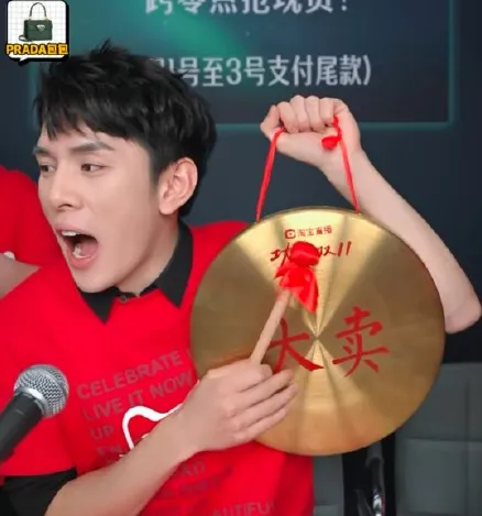 10月20日零点,今年双十一的第一场直播,这面锣曾经出现在李佳琦直播间,上面挂着大红绸子布,他手里拿着红布裹着的棒槌,一面敲锣一面对着镜头喊话,「不要睡!一睡几百块就没喽!」第二天,这面锣登上了微博热搜。前一夜的数据也同时出炉,有超过30亿的交易额在他的直播间完成,观看人次超过1.6亿。但现实中,和视频里李佳琦的亢奋不同,他在看到锣的第一反应是,「也不用这么夸张吧」。不过下一秒钟,他就接受了这个设定,在锣声和高亢的嗓音中,继续成为「李佳琦」。