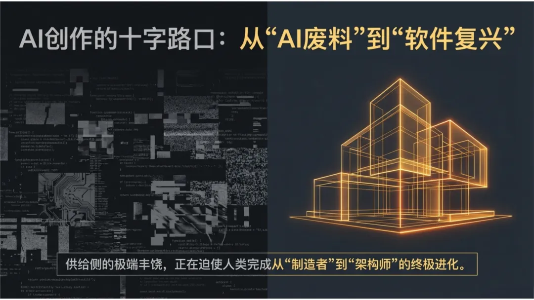 然而,在另一端,数字乐观主义者正在欢呼一场“软件复兴”(Software Renaissance)的到来。这场争论的本质,是无限的供给能力与有限的人类注意力/过滤机制之间的终极碰撞。当生成的边际成本趋于零,我们究竟是被“AI废料”(AI Scrap)淹没,还是在经历一场文明级的范式转移?