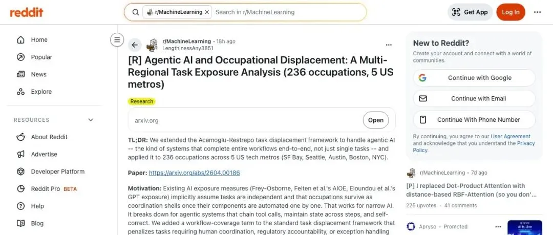 来源:Reddit MachineLearning|原文:[R] Agentic AI and Occupational Displacement: A Multi-Regional Task Exposure Analysis (236 occupations, 5 US metros)