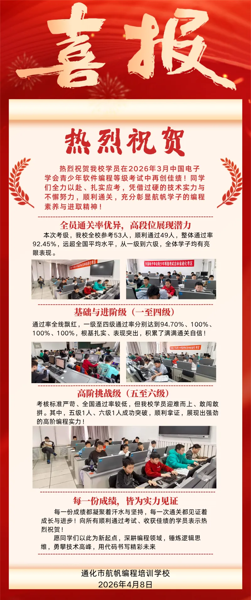 航帆编程2026 年 3 月青少年软件编程等级考试喜报!