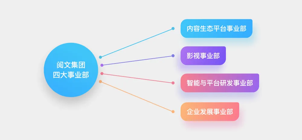 6月19日,阅文集团宣布开启组织架构升级:内容生态平台事业部、影视事业部、智能与平台研发事业部、企业发展事业部这新四大事业部,将构成阅文的新顶层结构。