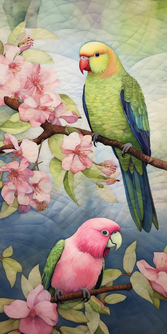 右上方鹦鹉脚趾形态错误(正面应为两个脚趾,见下文);左下方鹦鹉一只脚趾缺少指甲,左右脚形态不一致 | Pixabay,图片由AI生成