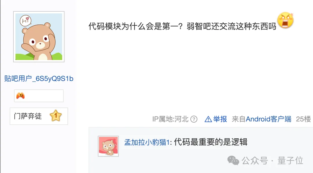 最离谱的是,弱智吧AI代码能力也超过了使用专业技术问答社区思否数据训练的AI,这下吧友自己都闹不明白了。