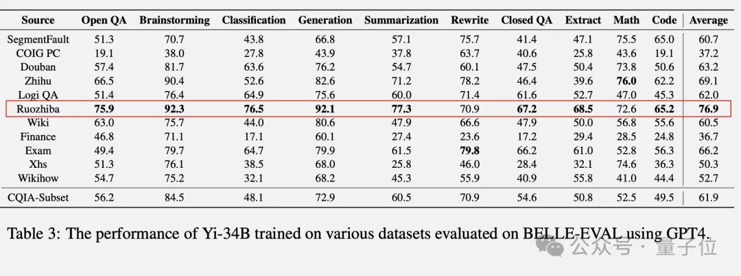 除了探索不同数据源的作用,团队还专门从中抽取出一个精华子集CQIA-Subset