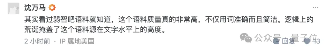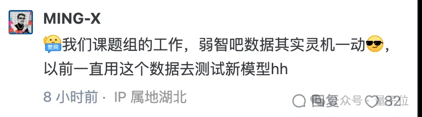 作者之一也现身评论区,透露使用弱智吧数据训练AI属于灵机一动,以前只用来测试。