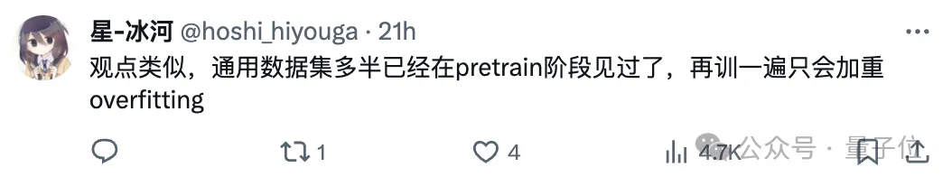 通用数据集多半已经在pretrain阶段见过了,再训一遍只会加重overfitting。