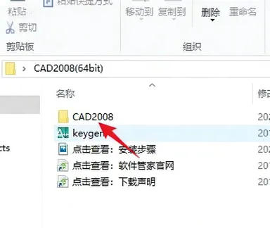 2.打开解压后的文件夹,双击打开【CAD2008】文件夹。