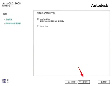 6.勾选【AutoCAD 2008】,点击【下一步】。
