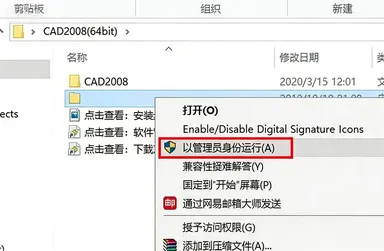 21.打开安装包解压后的【CAD2010】文件夹,鼠标右击【keygen】选择【以管理员身份运行】。