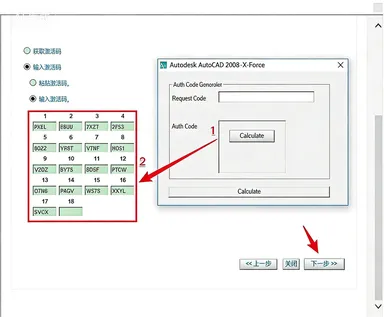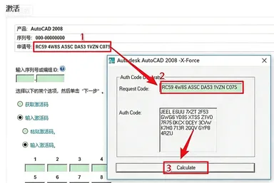22.生成激活码:①使用快捷键“Ctrl+C”复制【申请号】后的代码;②使用快捷键“Ctrl+V”将代码粘贴到【Request】后的框中;③点击【Calculate】生成激活码。