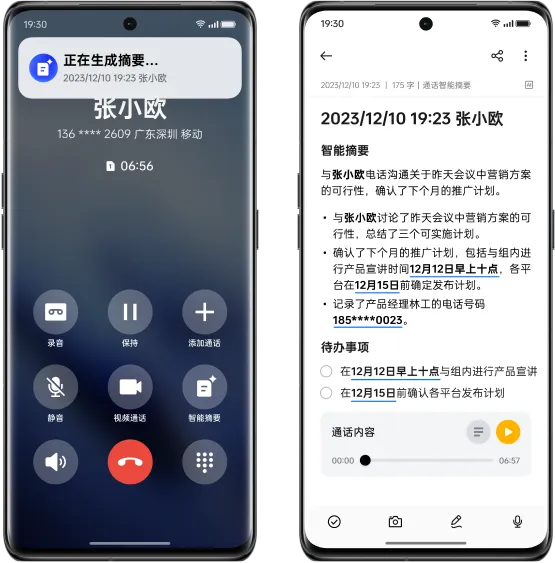 目前,OPPO基于从硬件到软件的优化,端侧在处理相关应用场景时,能够实现毫秒级的响应速度,同时也能做到根据用户操作微调图像的提取选择;而ColorOS 14新增的AI通话智能摘要,也依赖于端侧大模型的部署,才能实现在不影响用户正常使用手机通话的同时,精准识别当前通话内容生成摘要。小布助手的100+项AI能力,距离外界一开始设想的“完全体Siri”也只有一步之遥。