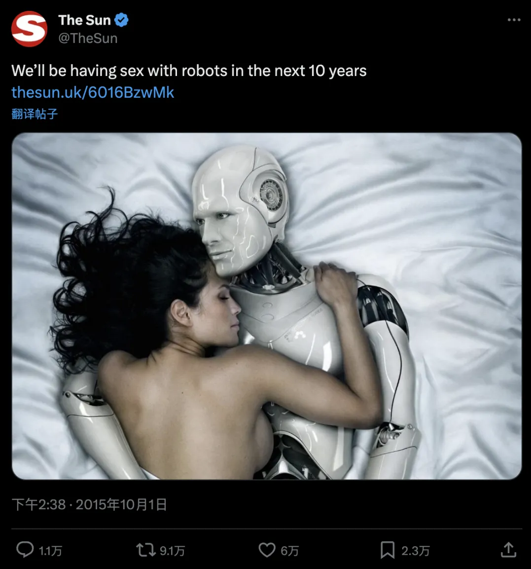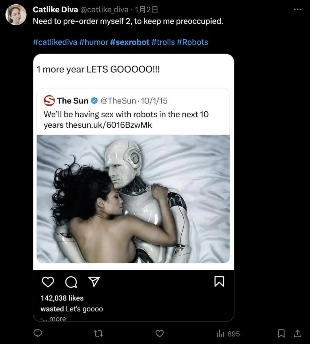 性AI机器人,到底行不行?我有一个朋友试了一下…比如说,OpenAI就希望在2024年实现GPT-5的研发,使其性能更进一步接近人脑。特斯拉这边,马斯克在没有预告的情况下推出了Optimus二代机器人(Gen 2)的预告视频,最引人注意的是机器人的手指所搭载柔性皮肤传感器,可以智能检测出周围的基础力度、温度、湿度、震动、材质、软硬等特性,所以又被叫做人型机器人的“电子皮肤”。正当各大科技巨头想在新科技时代里抢占身位的同时,依然有许多科技爱好者,将目光瞄向了一个传统的领域:2015年,太阳报发布了一篇大胆的预测文章,说在10年后,也就是在2025年,人类将可以与机器人doi,到2050年,人类将可以与机器人有真实的婚姻。这原本只是一篇普通的科技预言文章,但却意外引起了全球网友的共鸣。基本上每一年的1月1日,大家都要把这篇文章翻出来转发、点赞。2024年也不例外,如今这篇文章在推特上已经积累了足足9万转发,6万点赞,1.1万条评论。有网友觉得距离截止日期就剩1年了,一定得提前预定上。有网友对机器人的发展前景表示质疑,觉得还是与人相处容易。但我有一个朋友更关心的是,2024年,这个预言究竟实现了多少?这还要从北美最大的播客主播Joe Rogan的视频《性神经学家对性爱机器人的看法》说起。在这个视频里,Joe Rogan和一位性神经学家聊起了Sex Robot,并播放了一段号称当前“最先进”的性爱机器人RealDoll X的音频,震惊了许多观众。有人说:“出生得太晚,无法发现世界。出生太早,无法探索星空。但刚好能享受到机器人科技的神奇。”“造一个集成了人工智能的性爱机器人,让它走路、说话、给你做饭,这将是一个价值十亿美元的产业。”“一个性爱机器人不会作弊、欺骗、虐待、离开你,听起来是个很棒的主意”。“当机器人说‘我们在一起的时间会非常神奇’,我几乎哭出来了……”那么,这个“震惊世人”的RealDoll X,真的有这么牛逼么?根据官网描述,这款性爱机器人,由人工智能驱动,而搭载的芯片,就藏在机器人的后脑中。根据市场评测来看,相比于只能躺在床上一动不动的玩偶,这个机器人可以移动头部、嘴部,能通过眼睛的放大缩小、眉毛的微妙变化来传递机器人的“情绪”。并且,使用者可以通过下载不同的APP,来设计这款机器人的各种特征。比如说,你可以利用X-mode App,设计机器人的音调,并且设计她的对话风格,比如说快乐、害羞、感性、有趣、健谈…… 除了一些基础的语言功能、和表情功能之外,机器人还通过一些传感器来增强交互功能。比如说,机器人自带的蓝牙模块,可以与使用者的蓝牙模块进行测距。在机器人处于开机状态时,只要使用者靠近机器人,机器人就会说一些甜言蜜语,当使用者远离机器人时,机器人就会说一些“不要离开我”之类挽留的话。有点像电子舔狗,区别是要想让机器人闭嘴,可以给ta关机。而机器人的下体中,设计了不同的传感器,来模拟人体的接触。比如说,压力传感器,可以测出单位时间内压力的变化,来判断使用者的使用强度、频率。然后根据这些数据,画出一条函数。因为在使用者的使用过程中,使用者的兴奋度不断提升,频率、施加的压力就会加快,形成一条越来越陡峭的曲线。那么机器人便可以根据这条曲线的陡峭程度,来判断是轻度兴奋还是高度兴奋,然后说出相应的符合情景的语言。当你作为农民,一开始打牌慢的时候,农民会说:“我等的花儿都谢了。”当你在对局后期又是炸弹又是王炸的时候,农民伙伴就会说:“你丫的牌打得也忒好了。”最后对局结束,农民朋友就会给你递上一杯卡布奇诺,庆祝胜利。那么,这场人与机器人的“斗地主”中,除了牌局胜利所带来的生理性的愉悦感之外,也通过类社交交互,来强化了社交愉悦感。当然了,说完机器人的智能部分,机器人与人最为不同的是可以更换配件,做到高度定制。注:为什么没有男性机器人呢,并不是公司不注重女性市场,而是男性机器人天然的有设计安全问题,对机器人技术的要求会更高,大家可以自行思考下。选择完基础款式后,你可以选择机器人的五官、身材,头发什么颜色、多长、直发还是卷发……只要你有想得到的需求,并且资金量充足,你甚至可以联系客服,定制更具体的需求。如果你的XP真的足够小众,是三头六臂,还是武装直升机,理论上是可以做到的。根据网上的不同测评来看,平均到手价应该是1万美元,也就是大约71000元人民币。而根据Vivid Map的全球性交易均价图,2006年,一小时性行为的平均费用是340美元,但到了2019年,平均价格已经降至了260美元。(注:在我国,性交易是违法的)要是考虑到东南亚的廉价色情市场,那么,平均150美元的性交易价格,加上一张100~200美元的机票,将是更为“划算”的交易。