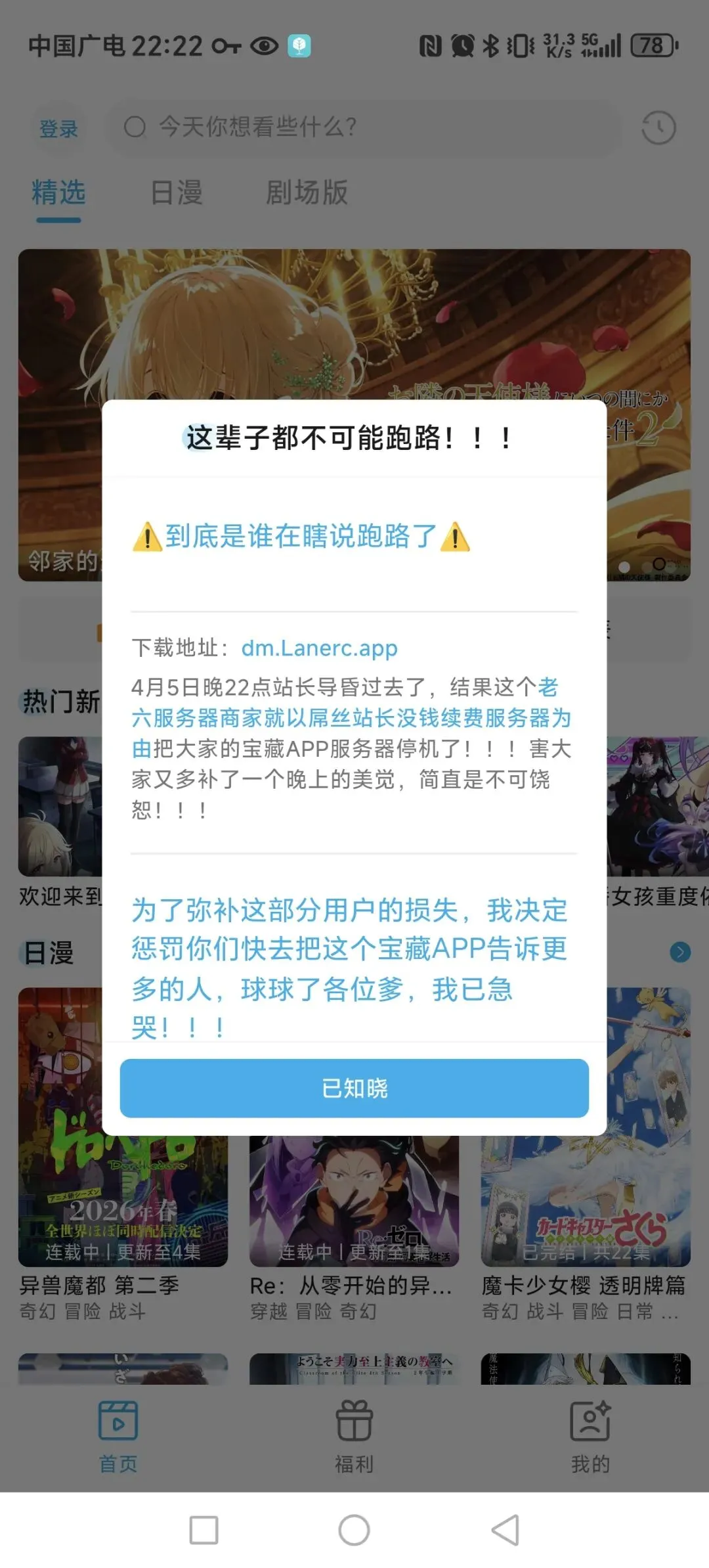 Lanerc,看番动漫App,有广告但是自愿选择分享一个软件最初是被站长的逆天发言给吸引过来的看吧,是不是有点逆天软件截图软件功能看番用,有广告,但是可以自愿选择是否观看,其他不知道软件下载https://v.lanerc.app感觉站长还是会引流啊