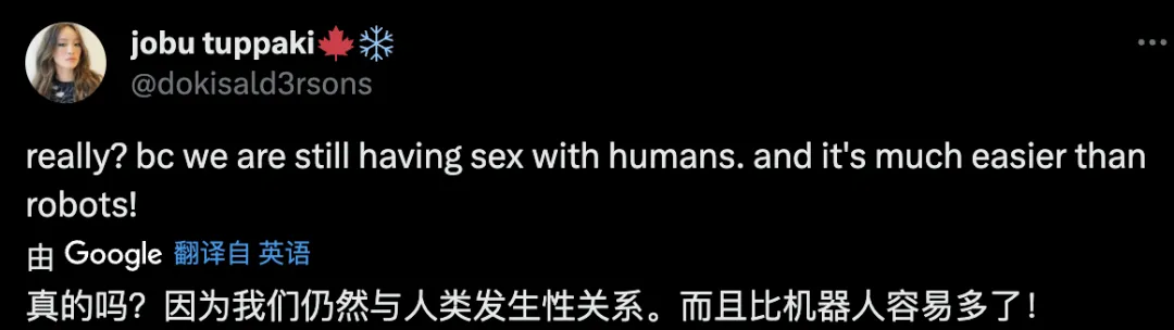性AI机器人,到底行不行?我有一个朋友试了一下…比如说,OpenAI就希望在2024年实现GPT-5的研发,使其性能更进一步接近人脑。特斯拉这边,马斯克在没有预告的情况下推出了Optimus二代机器人(Gen 2)的预告视频,最引人注意的是机器人的手指所搭载柔性皮肤传感器,可以智能检测出周围的基础力度、温度、湿度、震动、材质、软硬等特性,所以又被叫做人型机器人的“电子皮肤”。正当各大科技巨头想在新科技时代里抢占身位的同时,依然有许多科技爱好者,将目光瞄向了一个传统的领域:2015年,太阳报发布了一篇大胆的预测文章,说在10年后,也就是在2025年,人类将可以与机器人doi,到2050年,人类将可以与机器人有真实的婚姻。这原本只是一篇普通的科技预言文章,但却意外引起了全球网友的共鸣。基本上每一年的1月1日,大家都要把这篇文章翻出来转发、点赞。2024年也不例外,如今这篇文章在推特上已经积累了足足9万转发,6万点赞,1.1万条评论。有网友觉得距离截止日期就剩1年了,一定得提前预定上。有网友对机器人的发展前景表示质疑,觉得还是与人相处容易。但我有一个朋友更关心的是,2024年,这个预言究竟实现了多少?这还要从北美最大的播客主播Joe Rogan的视频《性神经学家对性爱机器人的看法》说起。在这个视频里,Joe Rogan和一位性神经学家聊起了Sex Robot,并播放了一段号称当前“最先进”的性爱机器人RealDoll X的音频,震惊了许多观众。有人说:“出生得太晚,无法发现世界。出生太早,无法探索星空。但刚好能享受到机器人科技的神奇。”“造一个集成了人工智能的性爱机器人,让它走路、说话、给你做饭,这将是一个价值十亿美元的产业。”“一个性爱机器人不会作弊、欺骗、虐待、离开你,听起来是个很棒的主意”。“当机器人说‘我们在一起的时间会非常神奇’,我几乎哭出来了……”那么,这个“震惊世人”的RealDoll X,真的有这么牛逼么?根据官网描述,这款性爱机器人,由人工智能驱动,而搭载的芯片,就藏在机器人的后脑中。根据市场评测来看,相比于只能躺在床上一动不动的玩偶,这个机器人可以移动头部、嘴部,能通过眼睛的放大缩小、眉毛的微妙变化来传递机器人的“情绪”。并且,使用者可以通过下载不同的APP,来设计这款机器人的各种特征。比如说,你可以利用X-mode App,设计机器人的音调,并且设计她的对话风格,比如说快乐、害羞、感性、有趣、健谈…… 除了一些基础的语言功能、和表情功能之外,机器人还通过一些传感器来增强交互功能。比如说,机器人自带的蓝牙模块,可以与使用者的蓝牙模块进行测距。在机器人处于开机状态时,只要使用者靠近机器人,机器人就会说一些甜言蜜语,当使用者远离机器人时,机器人就会说一些“不要离开我”之类挽留的话。有点像电子舔狗,区别是要想让机器人闭嘴,可以给ta关机。而机器人的下体中,设计了不同的传感器,来模拟人体的接触。比如说,压力传感器,可以测出单位时间内压力的变化,来判断使用者的使用强度、频率。然后根据这些数据,画出一条函数。因为在使用者的使用过程中,使用者的兴奋度不断提升,频率、施加的压力就会加快,形成一条越来越陡峭的曲线。那么机器人便可以根据这条曲线的陡峭程度,来判断是轻度兴奋还是高度兴奋,然后说出相应的符合情景的语言。当你作为农民,一开始打牌慢的时候,农民会说:“我等的花儿都谢了。”当你在对局后期又是炸弹又是王炸的时候,农民伙伴就会说:“你丫的牌打得也忒好了。”最后对局结束,农民朋友就会给你递上一杯卡布奇诺,庆祝胜利。那么,这场人与机器人的“斗地主”中,除了牌局胜利所带来的生理性的愉悦感之外,也通过类社交交互,来强化了社交愉悦感。当然了,说完机器人的智能部分,机器人与人最为不同的是可以更换配件,做到高度定制。注:为什么没有男性机器人呢,并不是公司不注重女性市场,而是男性机器人天然的有设计安全问题,对机器人技术的要求会更高,大家可以自行思考下。选择完基础款式后,你可以选择机器人的五官、身材,头发什么颜色、多长、直发还是卷发……只要你有想得到的需求,并且资金量充足,你甚至可以联系客服,定制更具体的需求。如果你的XP真的足够小众,是三头六臂,还是武装直升机,理论上是可以做到的。根据网上的不同测评来看,平均到手价应该是1万美元,也就是大约71000元人民币。而根据Vivid Map的全球性交易均价图,2006年,一小时性行为的平均费用是340美元,但到了2019年,平均价格已经降至了260美元。(注:在我国,性交易是违法的)要是考虑到东南亚的廉价色情市场,那么,平均150美元的性交易价格,加上一张100~200美元的机票,将是更为“划算”的交易。