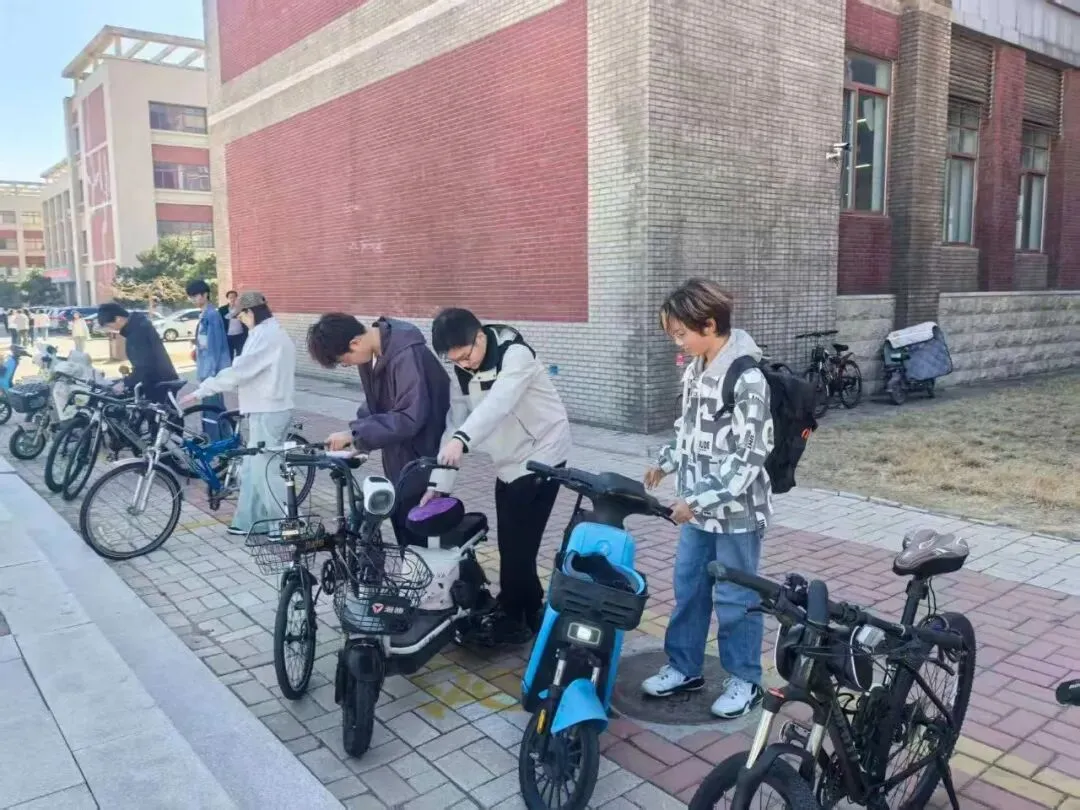 宣讲结束后,志愿者们走进校园各个角落,开展了校园非机动车规范摆放志愿活动。大家齐心协力,将校园内随意停放的自行车逐一整理、整齐归位,不仅改善了校园环境秩序,更以实际行动践行了文明出行理念,为师生营造了整洁、有序的校园通行环境。