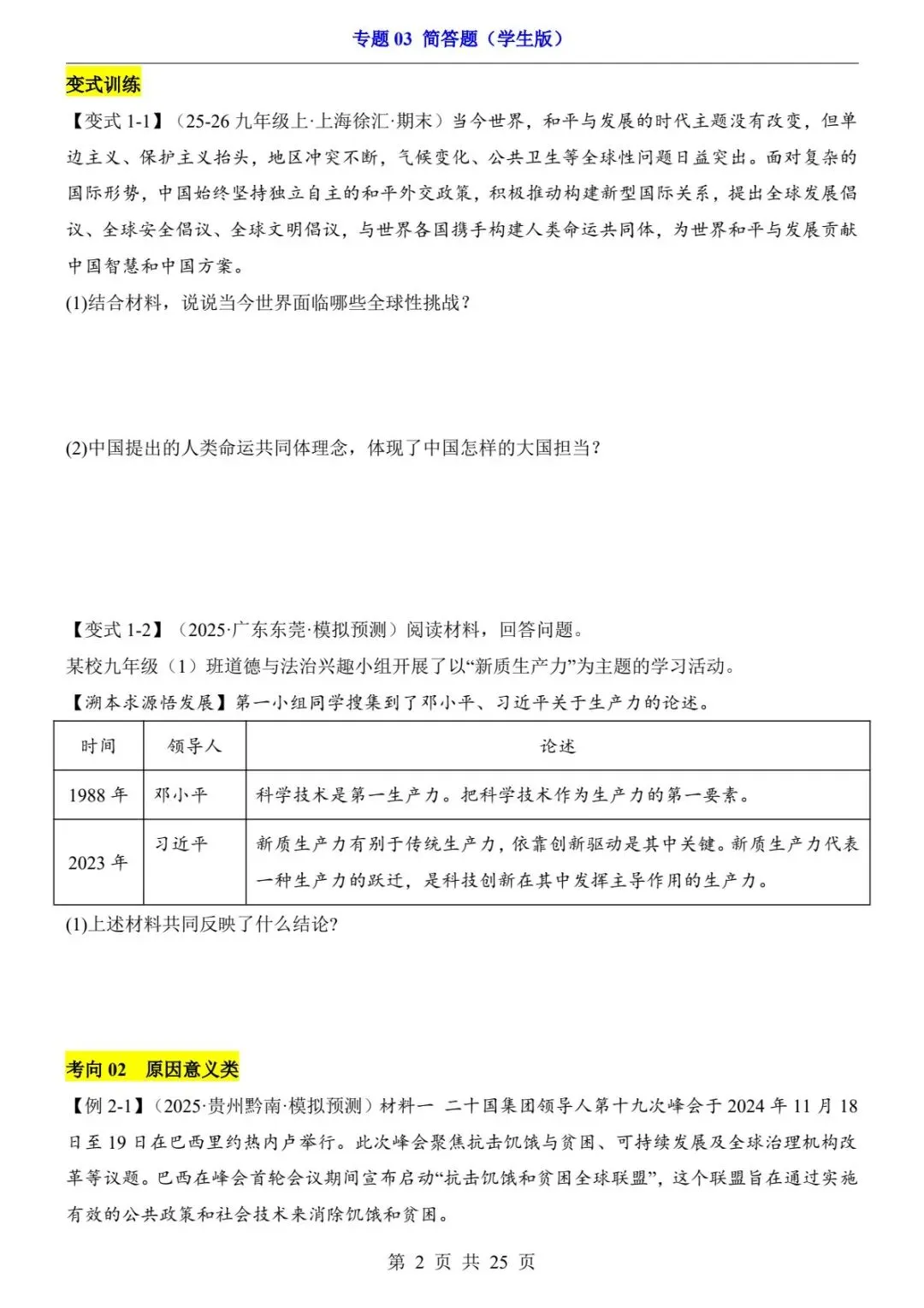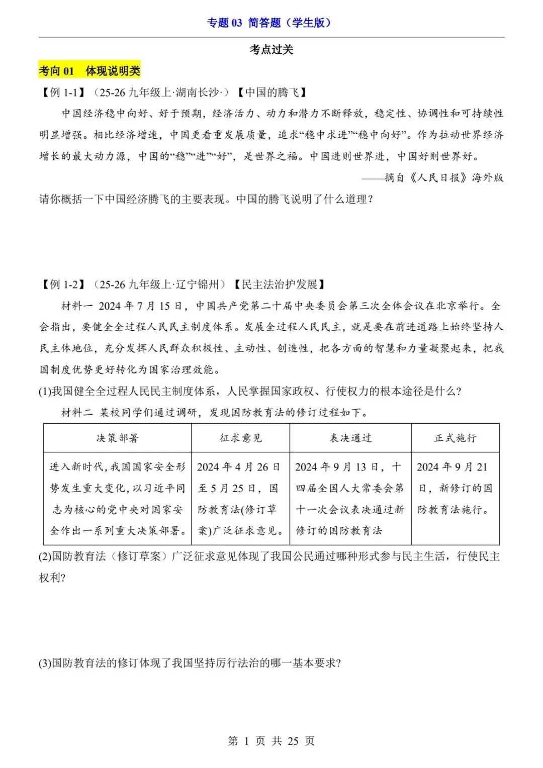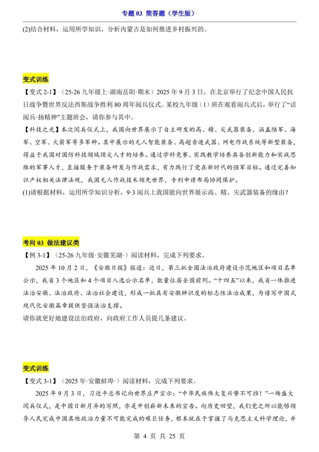 📣今日分享:中考道法简答题满分模板|4大必考题型+答题公式,直接套用!