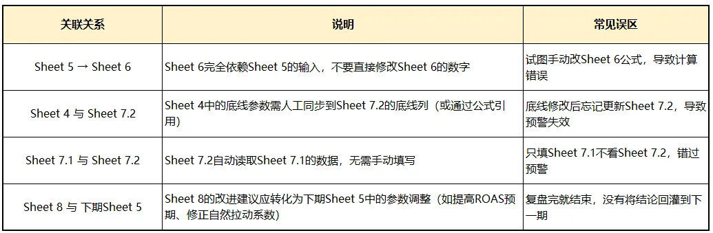 4. 将Sheet 8的“改进建议”作为下期Sheet 5参数调整的依据,形成闭环。