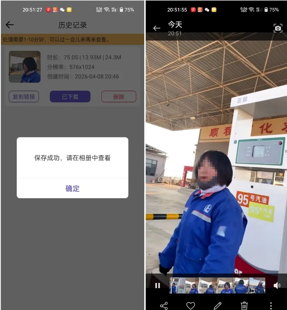 最后,确认视频处理无误后,我们点击“保存”按钮,就能将处理后的无水印、无字幕视频保存到手机相册中,后续不管是用于二次剪辑、分享给他人,还是用于工作、学习,都十分方便。除此之外,鲁班去水印字幕还有一个实用的小功能,就是支持批量处理视频,如果我们有多个视频需要去除水印和字幕,不需要一个个单独处理,批量导入后,依次框选、提交,就能高效完成所有视频的处理,大大提升工作效率。