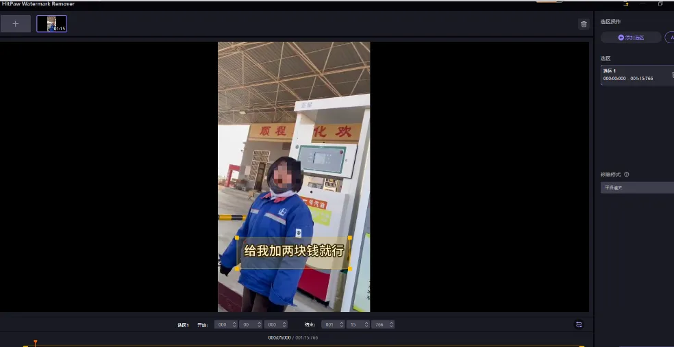 导入需要去除水印或者字幕的视频进来,框选需要去除的区域