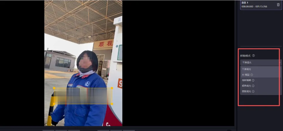 在右边选择去除模式,个人建议选择AI模型效果更好
