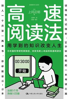 本书是日本作家上冈正明以脑科学为基础提出的高速阅读方法,旨在帮助读者通过科学的方法提升阅读速度。书中阐述了高速阅读法的五大优势,并详细介绍了在30分钟内将一本书读三遍的阅读技巧。用高速阅读法阅读,不仅能让你快速掌握大量知识,还能将这些知识应用到日常生活和工作中,从而改变人生。