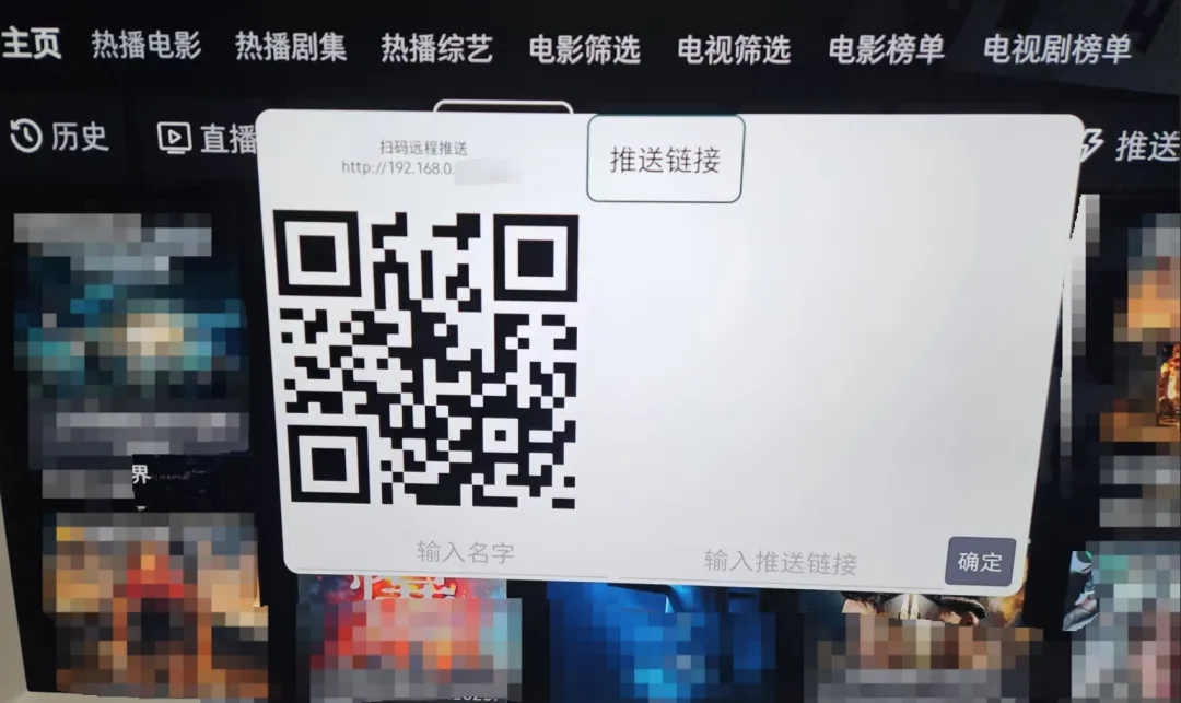 如同一网络下手机仍无法显示,手机打开浏览器手动输入,地址为上图中推送链接旁的“http://192.168……”。如手机输入仍无效,则只能通过遥控器手动输出接口数据源地址了。扫码成功,手机会出现如下界面: