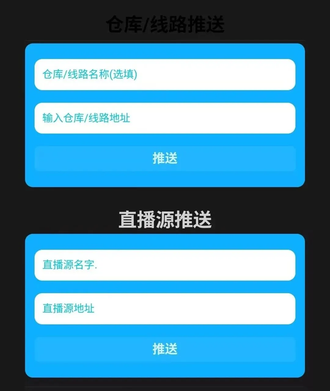3、按上图要求,输入对应的“仓库/线路地址”并点击“推送”,再输入对应的“直播源地址”并点击“推送”(地址信息可通过主页“知识库”获取)。“仓库/线路地址”是用于点播观看影视剧综艺,“直播源地址”是用于直播观看电视台。其中仓库/线路地址为必填项,直播源地址为可选项,可以不看直播,但是必须要看点播。4、我们验证是否推送成功,首先点击“搜索”,随机搜索一部影视剧综艺,尝试是否可以观看,如可以观看,则说明“仓库/线路地址”推送成功。首页点击“直播”,尝试是否可以观看,如可以观看,则说明“直播源地址”推送成功。TVBox与影视仓安装方法无异。