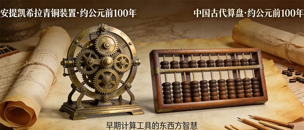 早在公元前100年的古希腊,人类就造出了第一台能自动计算的机器——安提凯希拉装置。这台被考古学家称为“世界上第一台模拟计算机”的青铜机器,由30多个精密的青铜齿轮组成,只要你转动手柄输入日期,它就能自动算出太阳、月亮的位置,甚至能提前几十年预测日食月食。