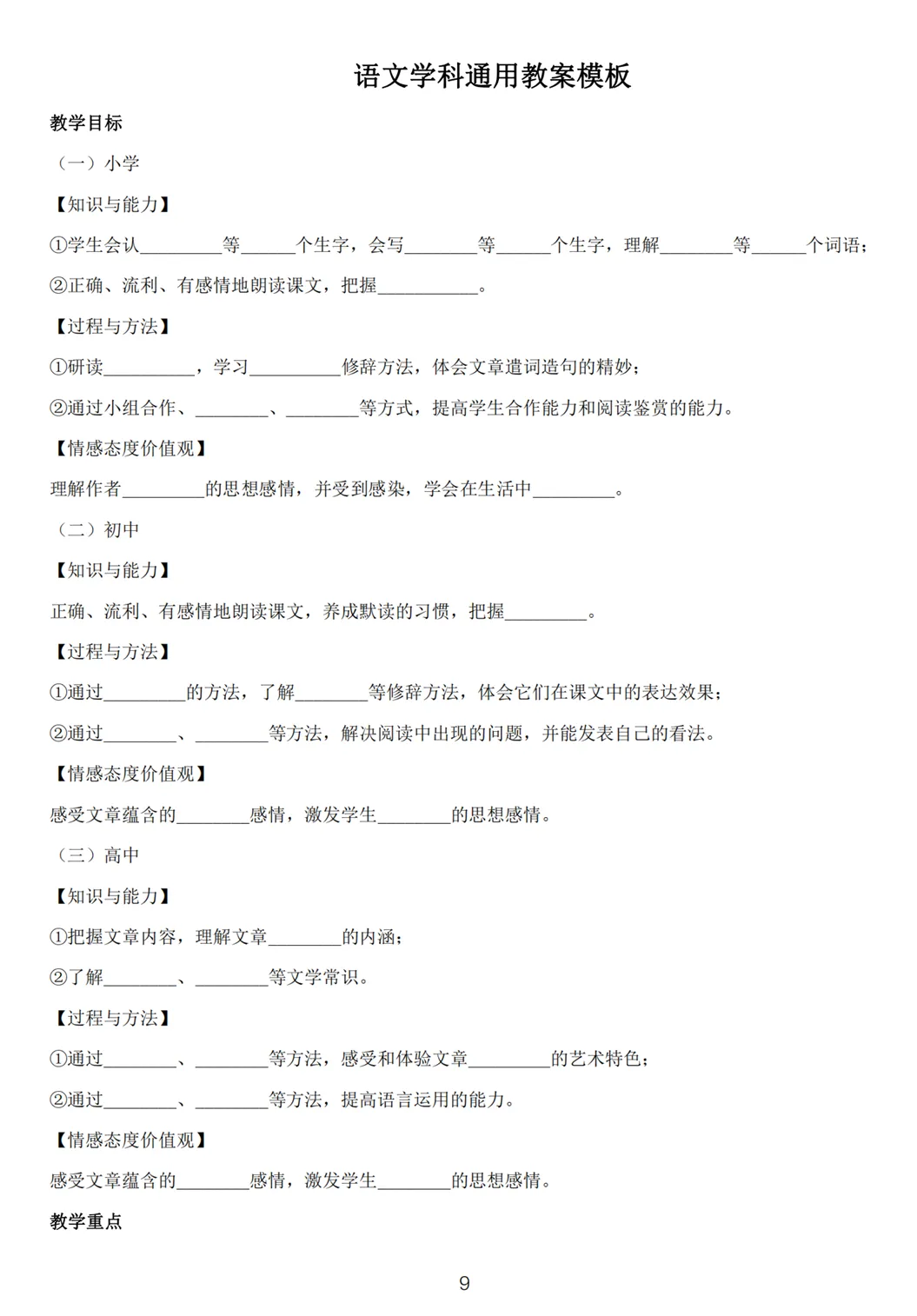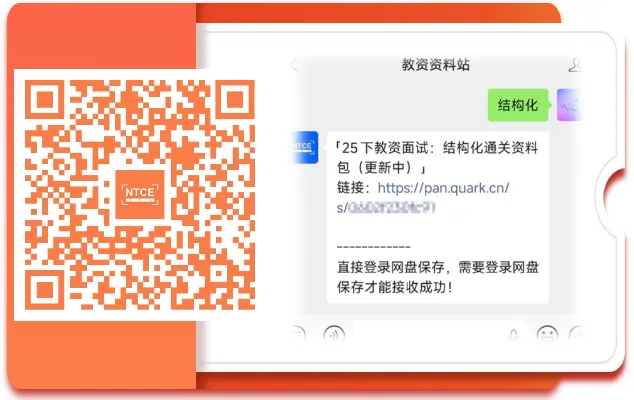 教资面试 | 试讲教案万能模板(全学科)教师资格面试在抽题后有20分钟写教案,建议在15分钟内写好教案,因为还要留时间去构思这个题怎么进行试讲。教案的内容包括教学目标、教学重点难点、教学过程、板书设计等模块,我们在准备教案时,尽量按照规范的思路和流程准备,避免丢失了某一部分从而影响分数。文末免费下载pdf版封面正文下载长按识别下方二维码关注公众号:教资资料站私信发送关键词:试讲备考教师资格证的旅程,既是知识的积累,更是意志的磨砺!小编陪大家一起卯足劲头向前!建议大家收藏并⭐星标【教资资料站】公众号可以随时免费下载最新备考资料!