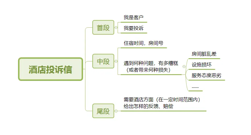 投诉信写作要注意时态:叙述酒店发生的事情时,用过去时;当前要求如何赔偿,用现在时。