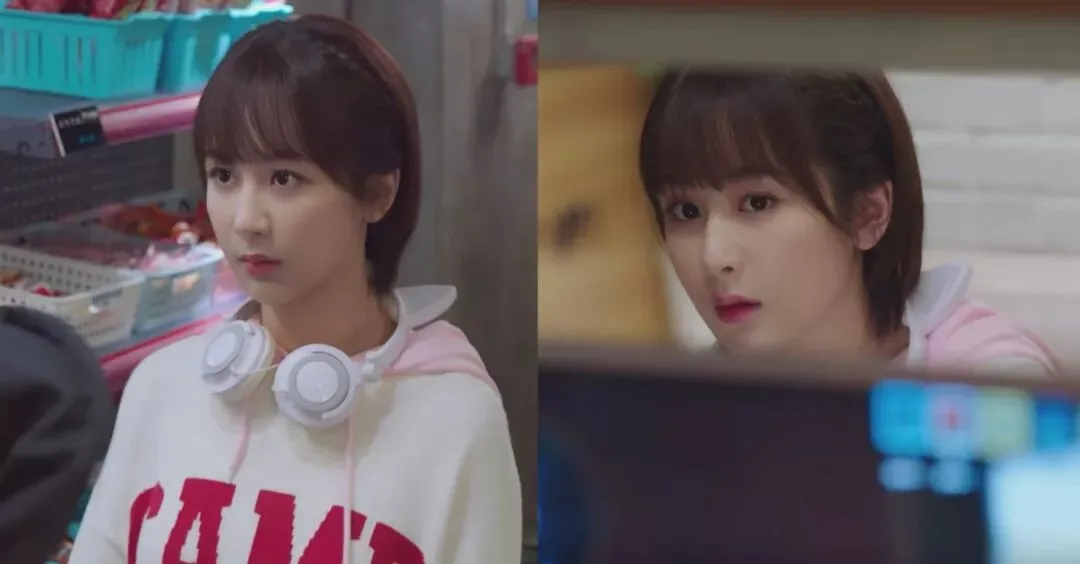 ▲鱿小鱼在第一集遇到韩商言时的造型俏皮可爱,身穿粉色长卫衣,在软萌的短发中编了小辫子,抹上珊瑚红唇膏,扑通扑通的心跳声就要溢出屏幕了。