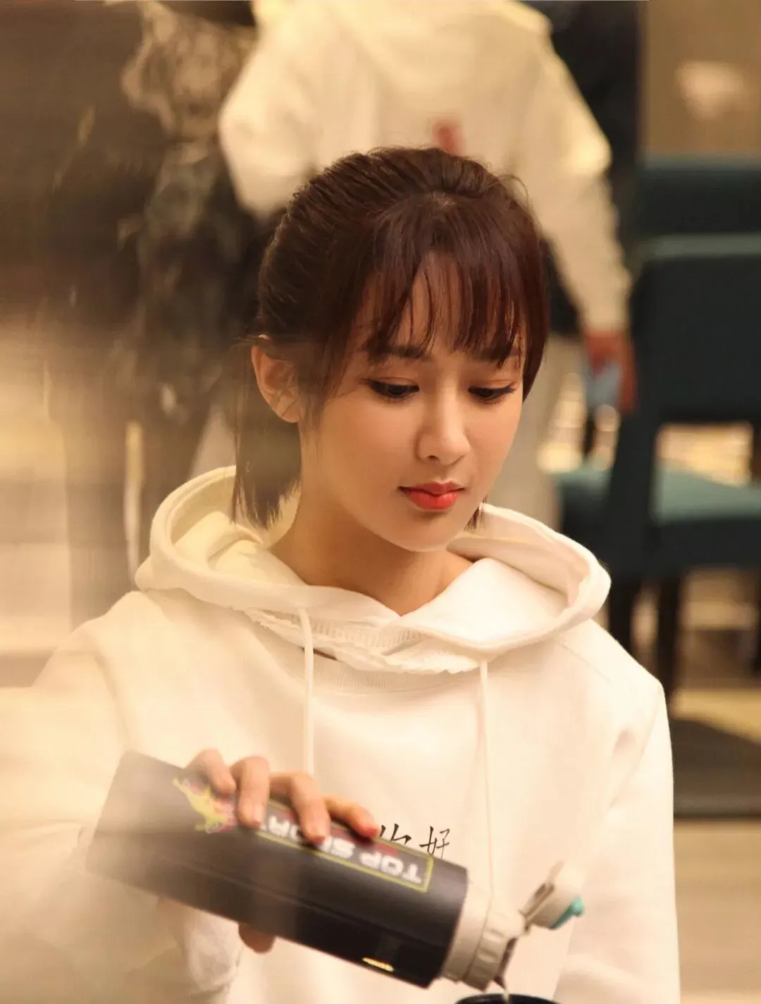 ▲剧中佟年的日常妆容较为清新,简单半扎头发,随意拨弄的轻薄刘海,腮红与唇妆保持一致的嫩粉色,十分贴合佟年的性格气质。