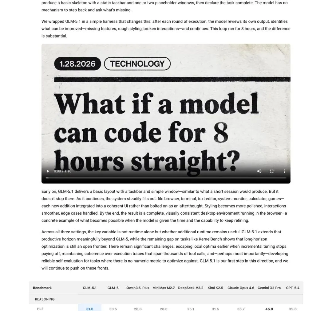 ▲ Z.ai博客发出灵魂之问:"What if a model can code for 8 hours straight?"