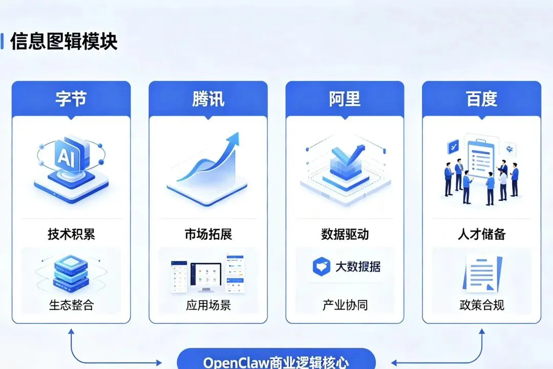 配图建议:大厂布局对比图,分列字节、腾讯、阿里云、百度动作与商业逻辑,简洁明了
