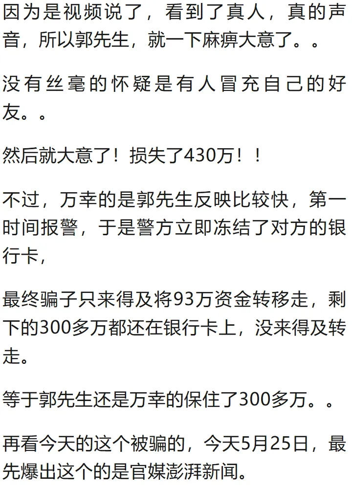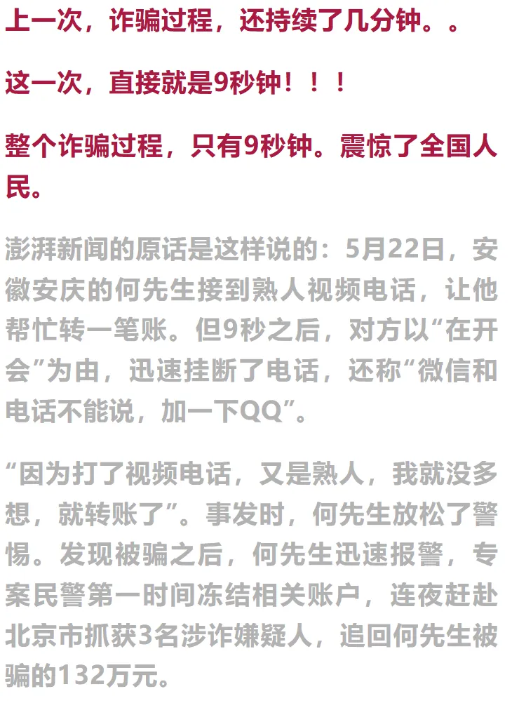 根据报道,今天这个AI换脸诈骗,被骗的金额达到了132万,之所以现在刷屏了,是因为诈骗比上一次还迅猛!!