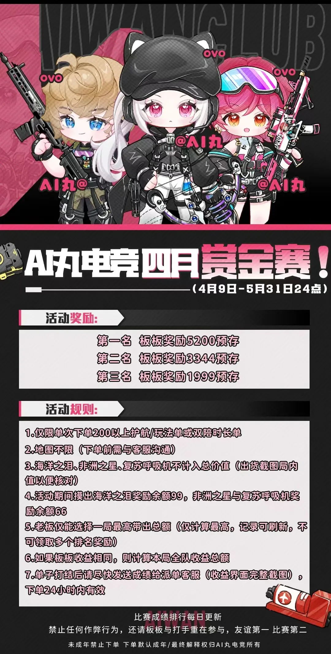 【Ai丸电竞】4月限定赏金赛暴力开打!奖金高达5200【Ai丸电竞】4月限定赏金赛暴力开打!!新鲜出炉!!!测试中,落棋不悔~链接:AI丸通缉令-你在名单上吗?近期热门玩法合集,链接下跳链接:【Ai丸电竞】2026年4月爆火玩法合集【Ai丸板板猛攻系列】链接:最新玩法合集-Ai丸猛攻系列【Ai丸军火库系列】链接:最新玩法单合集-Ai丸军火库【Ai丸航天系列玩法】策划加速赶工中,尽情期待。。。【Ai丸巴克十系列玩法】策划加速赶工中,尽情期待。。。【Ai丸监狱系列玩法】策划加速赶工中,尽情期待。。。各种各样的新奇玩法尽在Ai丸电竞,以上只是部分玩法,更多玩法请咨询客服,有需要专属定制玩法的板板们也可以联系客服~以上最终解释权归Ai丸电竞所有