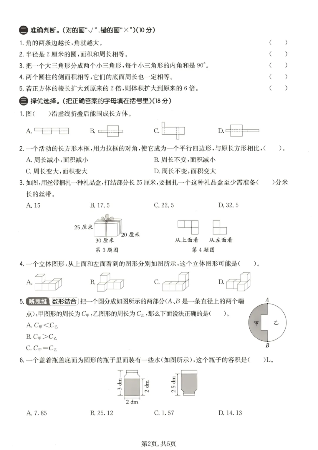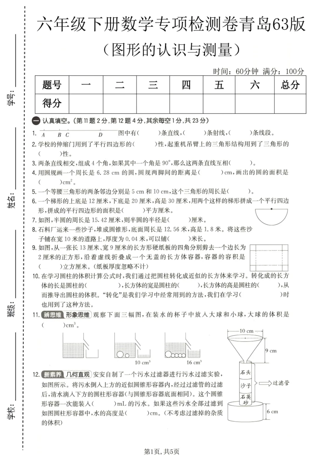 【免费下载】六年级(下)数学 图形的认识与测量专项检测卷《青岛63版》,PDF电子版,共5页,先保存,以免资源失效